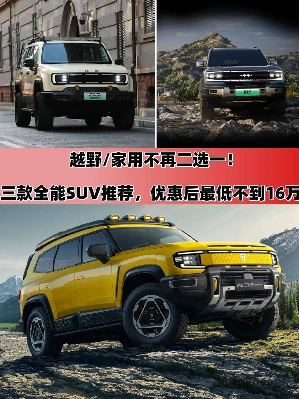 新能源硬派SUV的革新,正将“越野”从专业玩家的专利变为家庭生活的延伸。就比如以上三款SUV车型,相比一般的城市SUV车型来说,在越野性能上都有更优秀的表现,同时又比硬派SUV车型有着更好的舒适性和更丰富的配置表现,可谓是越野与家用两不误。如果对空间和舒适有更高的要求,那深蓝G318就是更好的选择;如果想要更好的越野体验,那BJ40增程版无疑是更加值得选择;如果对智能驾驶有更高的要求,那豹5智驾版绝对是超值之选。可以说,无论是追求舒适、性能,还是智能体验,相比同级别车型,它们无疑是极具诱惑力的存在。